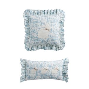 The Belvedere Toile Bunny Pillow – Square features a soft blue toile pattern accented with delicate embroidered bunny detail. Crafted from cotton with a romantic ruffle flange and finished with a durable canvas backing, this pillow brings timeless European elegance to sofas, chairs, and beds.