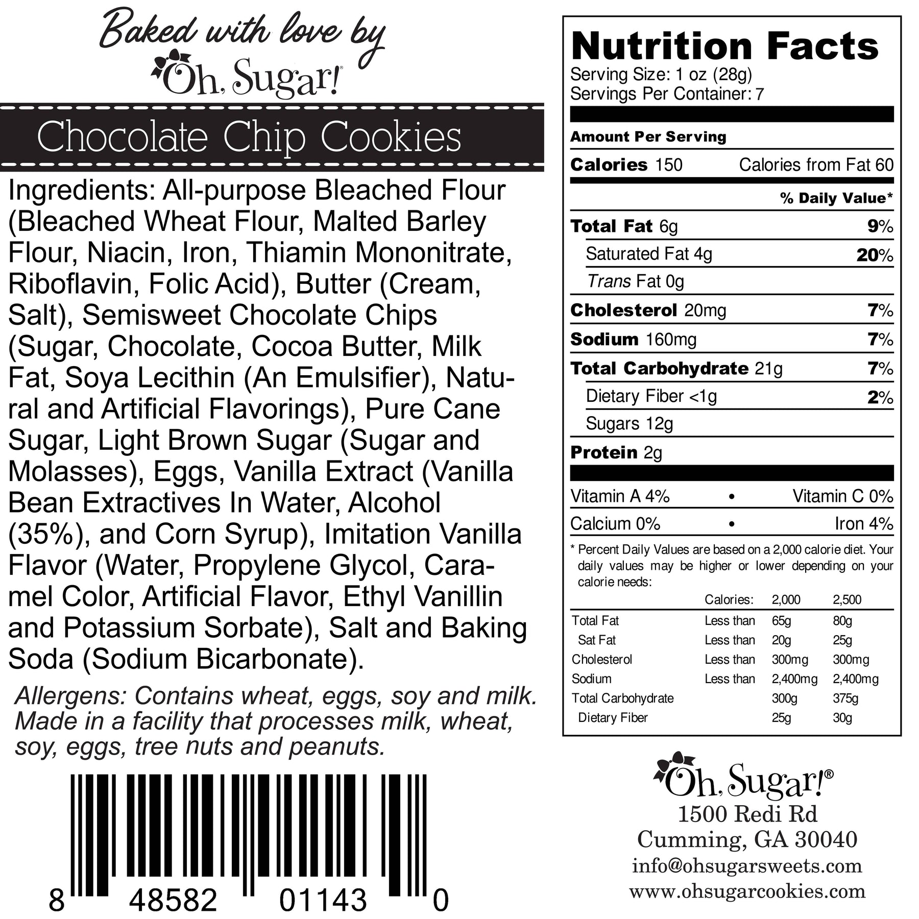 Our best-selling Chocolate Chip Cookies are filled with real butter, hand-cracked eggs, and gourmet chocolate chips. These bite-sized cookies are made fresh daily by skilled artisans using the best ingredients. Wrapped in our charming pouches, these are perfect for snacking and make a great gift. * Case of 12 resealable large plastic mason jar pouches * Each pouch has 7 oz of cookies * Pouch measures about 4.5" w x 9" h x 2" d * 4 month shelf life