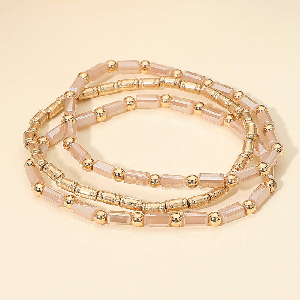 Elevate your accessory game with this stunning beaded stretch bracelet set featuring a sophisticated blend of round and rectangular beads in captivating pink tones. The flexible, stretchable design ensures a comfortable fit for any wrist, making layering effortless and versatile. Wear them individually for understated elegance or stack them together for a bold, fashion-forward statement. Ideal for everyday styling or adding that perfect finishing touch to special occasion looks. Each bracelet measures 0.5" in height and is lead and nickel compliant for worry-free wear.