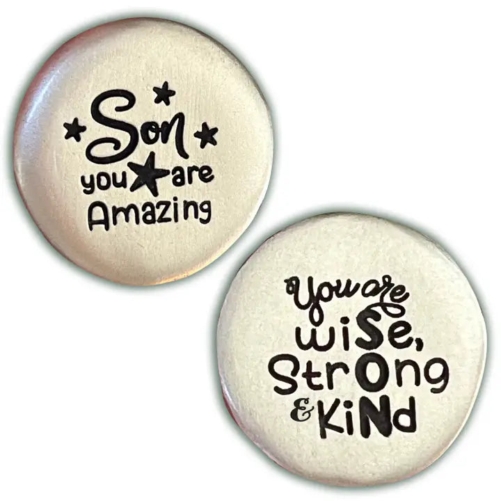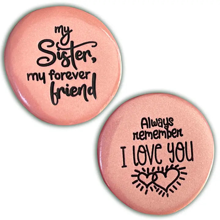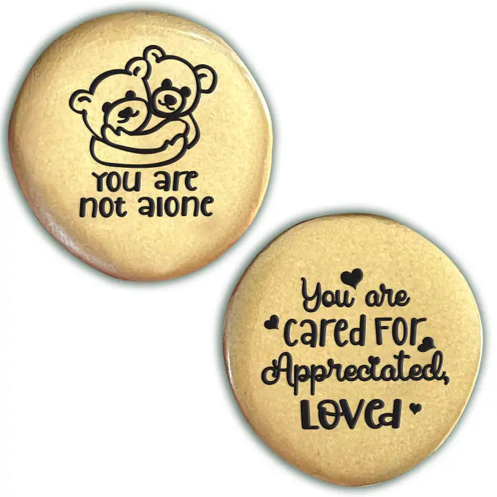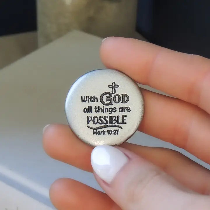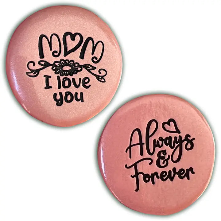 A fresh look for our very popular category of pocket pieces, expanding our tokens and crosses to include our new Pebbles! These cast metal, smooth texture stones are finished in oxidized gold, silver, or rose gold. Each pebble is about 1 ½" diameter.