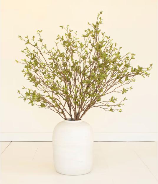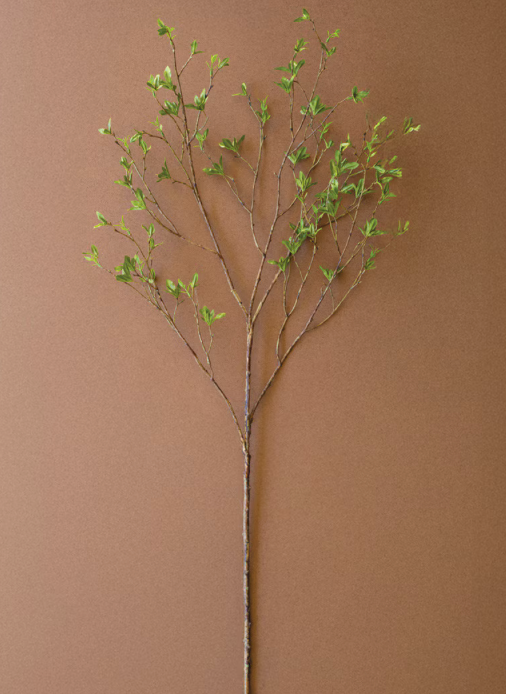 Bring the fresh beauty of early spring indoors with this 46.5" artificial budding leaf spray. Designed with slender, natural-looking stems and delicate green leaves just beginning to unfurl, this piece adds airy height, texture, and a soft pop of color to any arrangement. Perfect for tall vases, entryway displays, or layered seasonal décor, it blends effortlessly with florals, berries, or greenery for a full, lifelike look. A timeless accent for year-round styling with a light, organic feel.