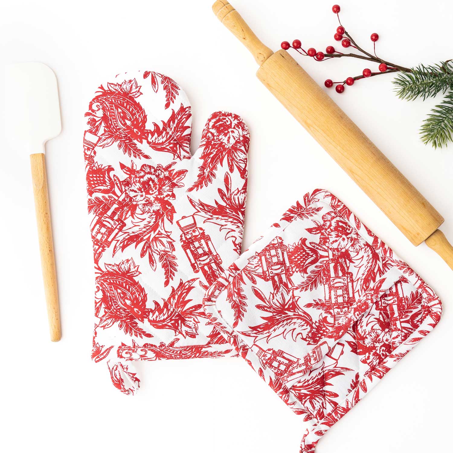Nutcracker Toile Oven Mitt Set