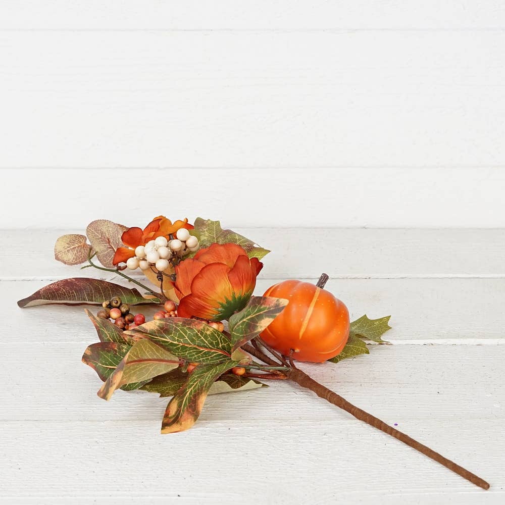 This 20-inch spray features a mix of fall hydrangea and peony accented with pumpkins and berries, perfect for adding a rich, seasonal touch to your autumn decor.