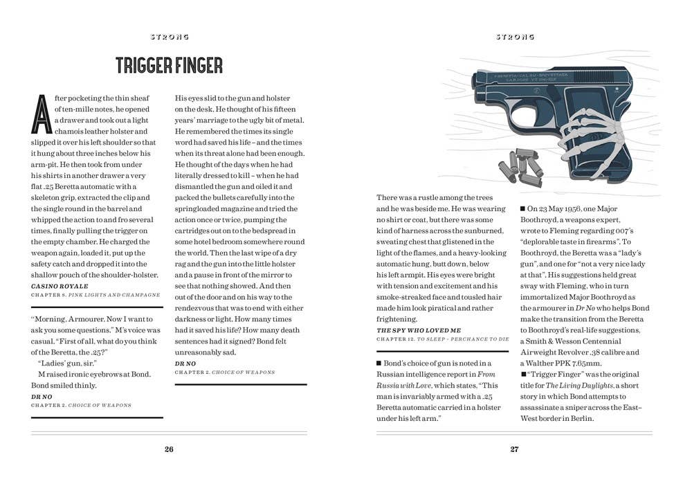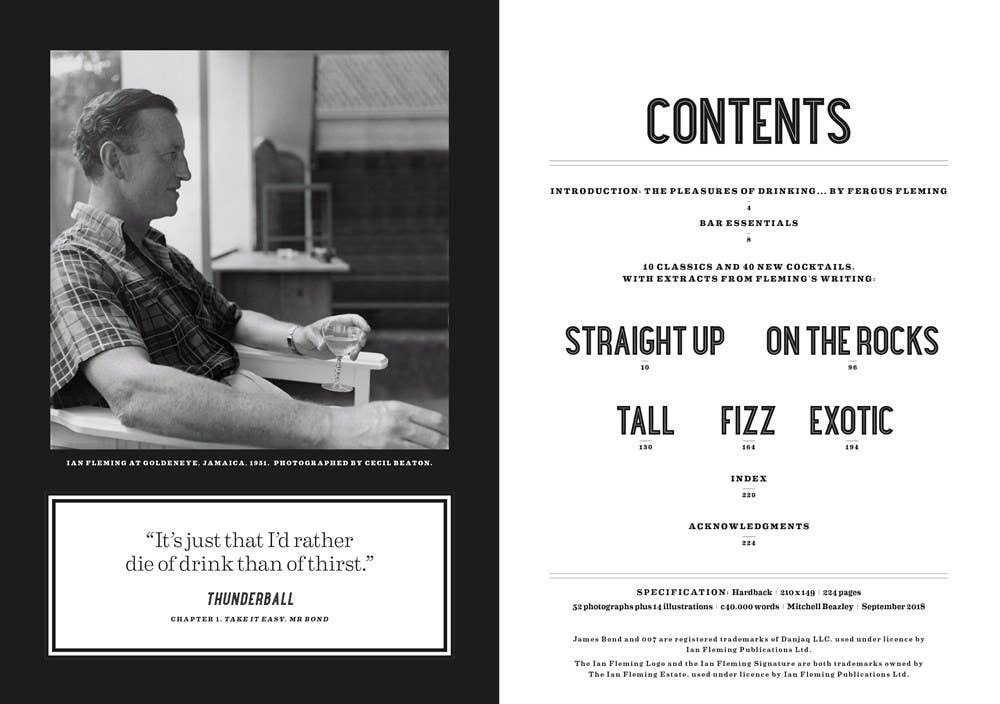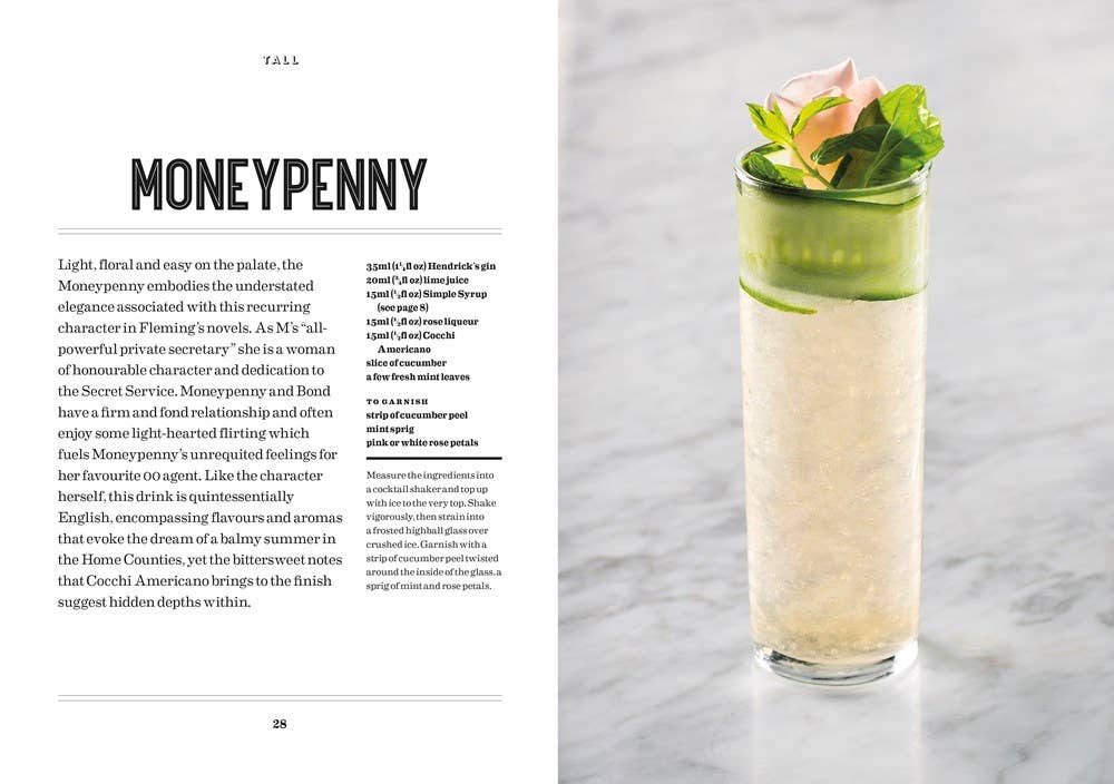 Drinking with James Bond and Ian Fleming, the Official Cocktail Book | Hardcover Readers can explore James Bond creator Ian Fleming’s writing on the pleasures of drinking and mix themselves fifty delicious cocktails from recipes inspired by his books and developed by award-winning London bar, Swift. Both Bond and Fleming were partial to a stiff drink. In both fiction and real life, cocktails were an important and well-chosen accompaniment to adventure and daring and often relaxing. Fleming made the Martini famous with Bond’s ritual of always ordering it “shaken, not stirred”. But in every James Bond book a wide selection of strong, sophisticated and carefully crafted drinks are essential details to the story. The recipes in Shaken are divided into five categories: Straight Up; On the Rocks; Tall; Fizzy; and Exotic. Sip on inventions such as Smersh, Moneypenny, That Old Devil M and Diamonds Are Forever, as well as classic Bond cocktails such as the Vesper