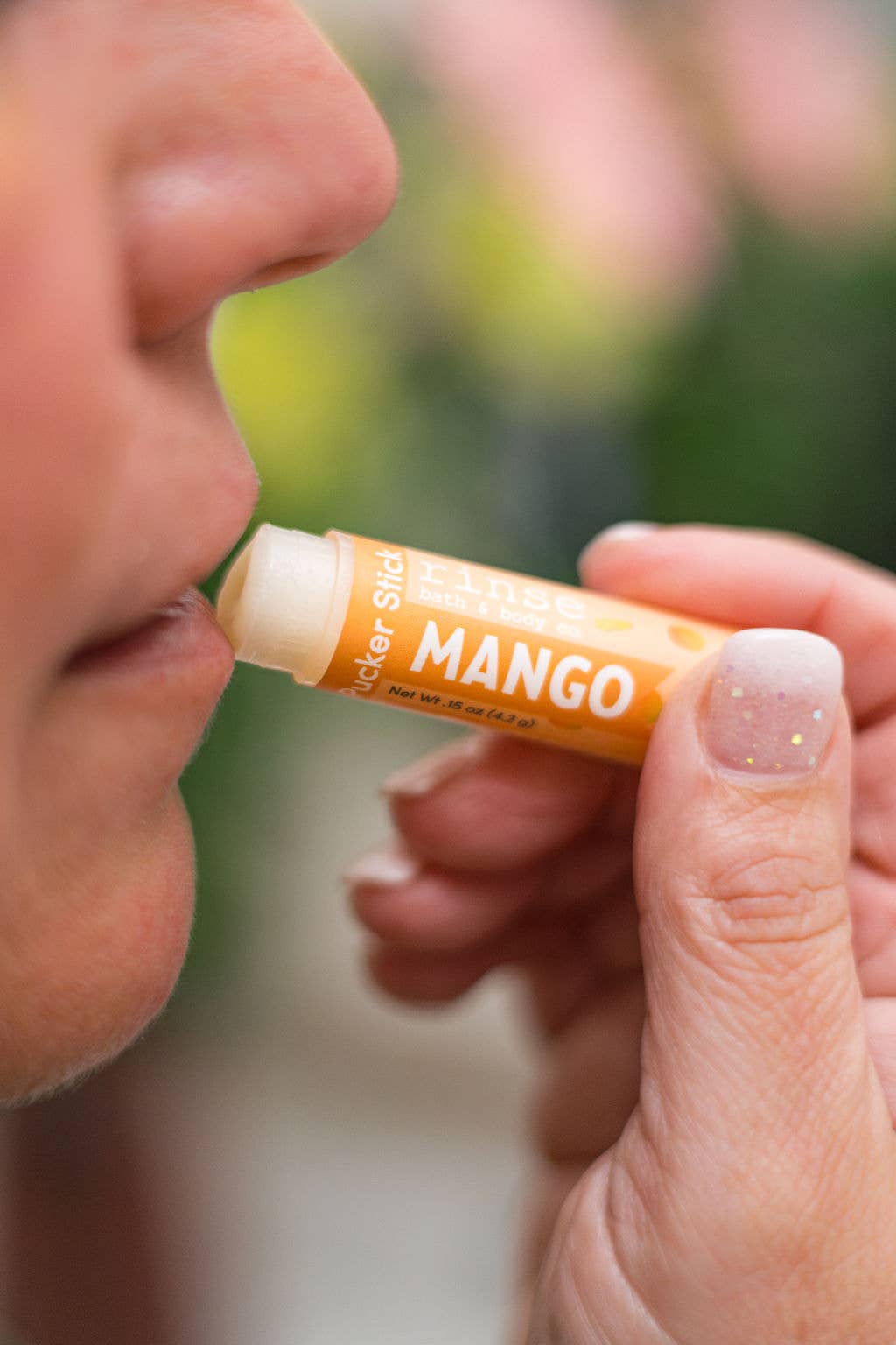 Mango - A true mango flavor that is a little sweet & a little tart. A creamy, nourishing & simply fantastic lip balm. It goes on smooth, it's not waxy or greasy & you don't have to constantly reapply it. The ingredients provide a great slip on the lips with moisturizing properties that last & last. 100% Naturally Derived Ingredients Gluten Free .15 oz. twist-up tube.
