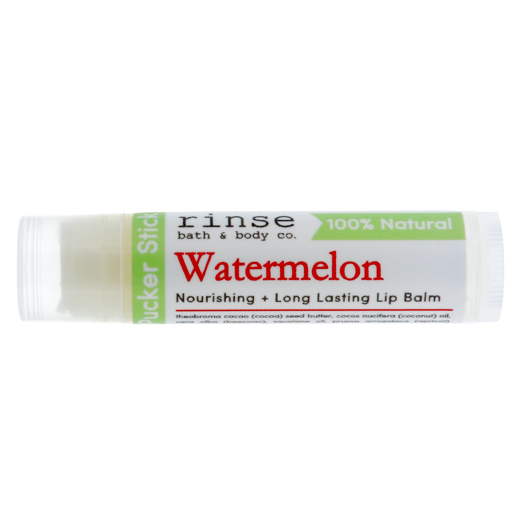 Watermelon- More real watermelon flavor than the sweetness of candy. A creamy, nourishing & simply fantastic lip balm. It goes on smooth, it's not waxy or greasy & you don't have to constantly reapply it. The ingredients provide a great slip on the lips with moisturizing properties that last & last. 100% Naturally Derived Ingredients Gluten Free .15 oz. twist-up tube.