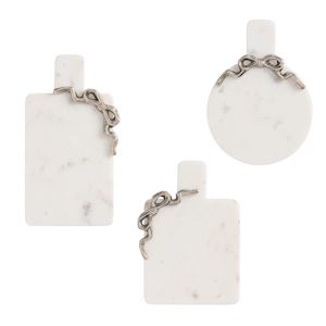 Classic and refined, the Belvedere Marble Board – Rectangle is crafted from smooth white marble and finished with an elegant sculpted bow detail. Its elongated silhouette makes it perfect for serving small bites, arranging cheeses, or styling perfumes, candles, or jewelry with European sophistication.  7 1/2" x 5"