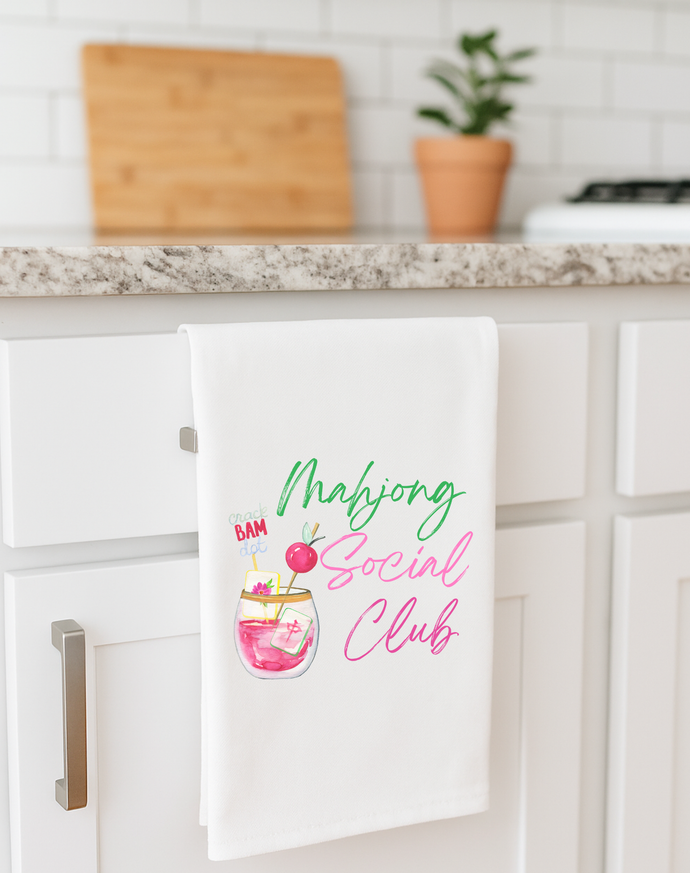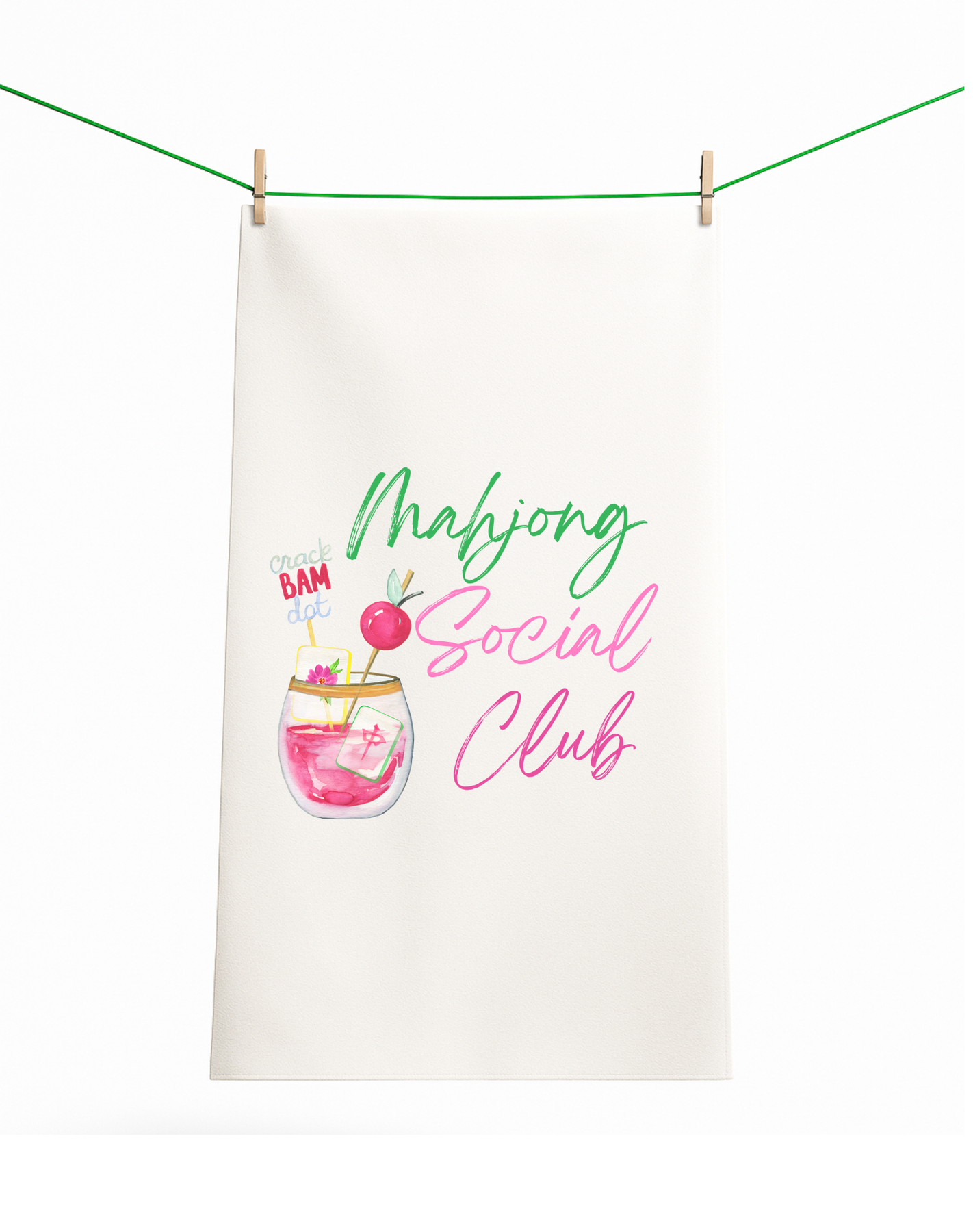 Darling mahjong gift-flour sack towel with watercolor Mahjong Social Club Perfect for girlfriend gifts, birthday gifts, tea towel sections, and impulse sections. Our tea towels make the perfect gifting for Mother's Day, Girlfriend Gifts, Gift Exchanges, and Teacher Gifts, stocking stuffer bars, and novelty. Margin Builder and perfect for those gifts under $10 if you price keystone (65%-75% margin if you price $12-$14!) Our items are always RTS, ready to ship tea towels. 100% cotton towel Screen printed in Denver, Colorado Coordinates with Perfect holiday, girlfriend and gift exchanges