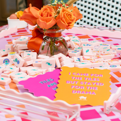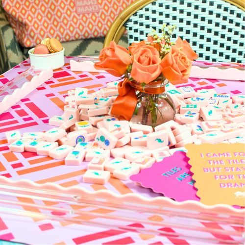 Structured, cheerful, and full of personality - our Brightside Mahjong Mat is where clean lines meet colorful fun. With a geometric pattern of nested rectangles forming bold, rhythmic squares, this mat brings just the right mix of order and play to your table. Designed for the ones who love a little pattern but still want their tiles to shine, Brightside is simple where it needs to be and delightful where it counts. It sets the tone for a game that feels fresh, connected, and ready for whatever comes your way. Available in a variety of colorways - from soft pastels to punchy brights - each version offers a different kind of vibe while staying true to the joyful heart of the game.