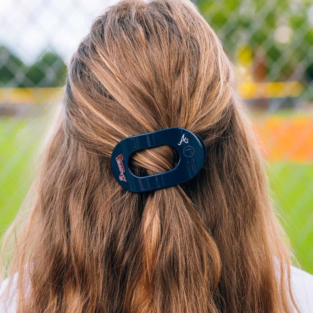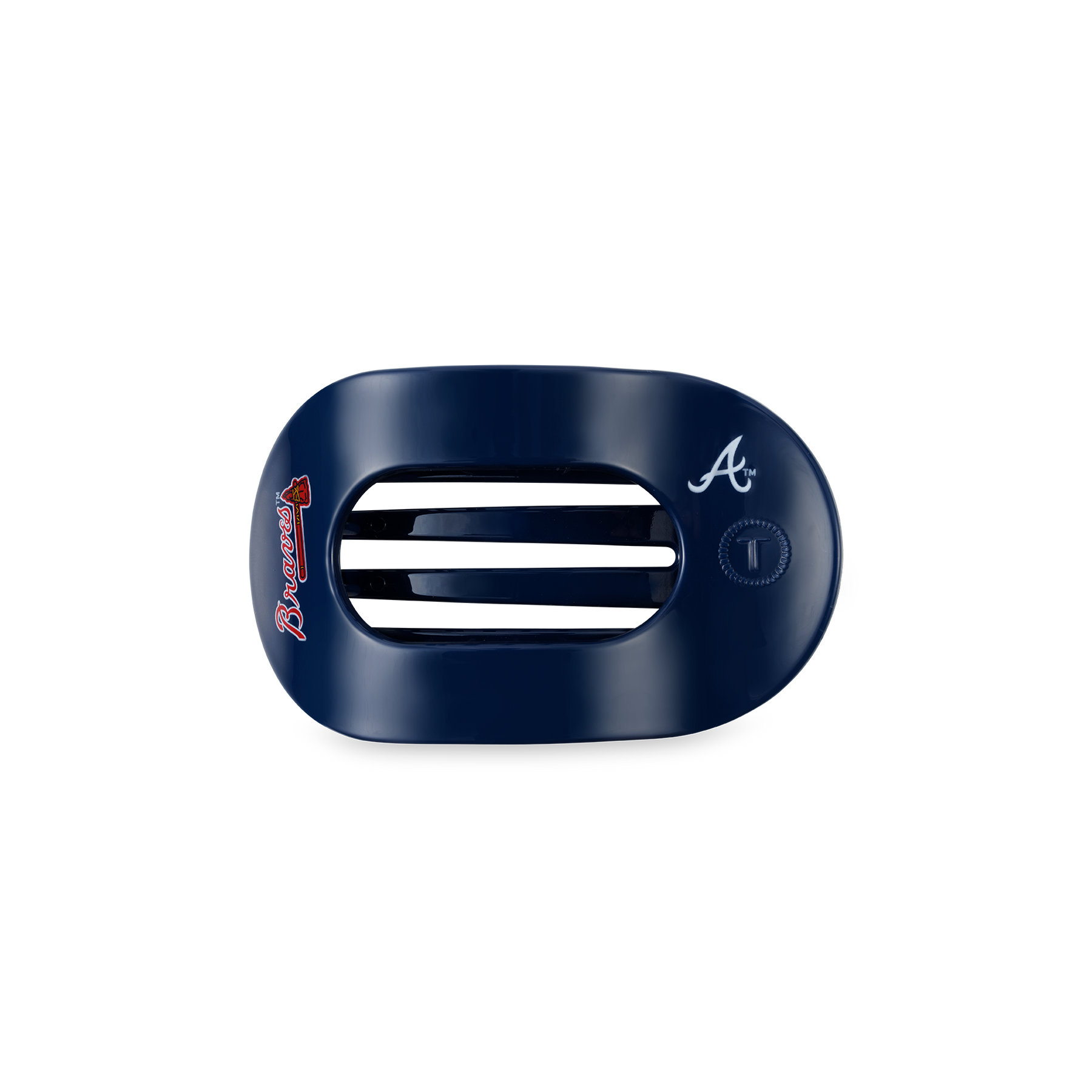 Lay flat and relax with the new TELETIES x MLB®, Atlanta Braves Small Flat Round Hair Clip in Navy. This hair clip is designed to allow you to lay back flat, do yoga, or sit comfortably in a seat with a headrest, and it is made with the same material that is nearly unbreakable. Lay down flat with comfort Bendable teeth for a secure yet gentle hold Lightweight, durable, and suitable for all hair types Perfect for all-day wear—from sunup to sundown This is an officially licensed MLB® product. Sold as an individual unit. The small size is suitable for thin to medium hair types, whether worn up or half-down. The small size is 3.25 inches long.